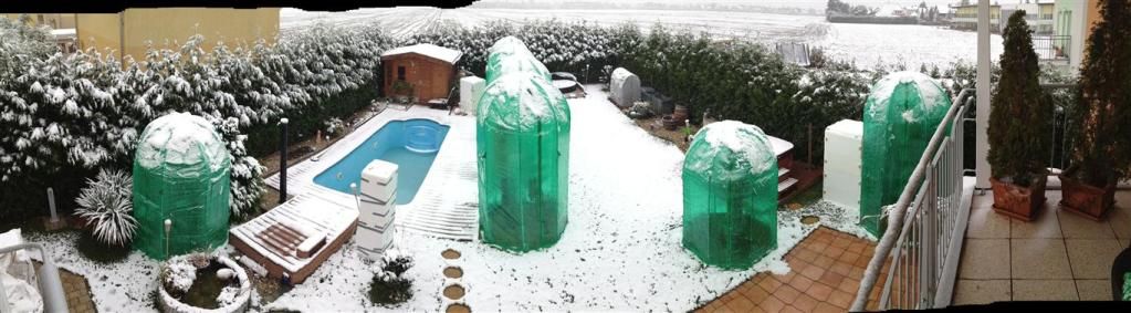 Habe gestern aber noch drei Musa basjoos mit Heizkabel und Folien versehen müssen, sonst wären sie heute morgen welk gewesen.
