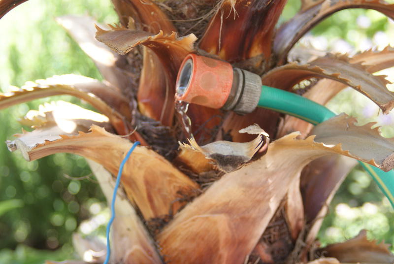 interessant ist auch das Wachstum der Pflanzen im Hintergrund, Musa, Hosta....