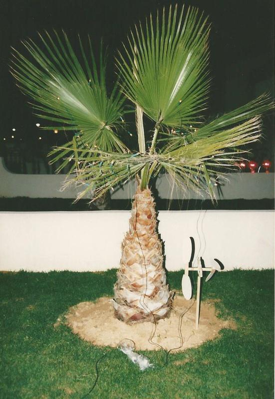 Hier kann man sehr gut das langsamere Wachstum der W. filfera erkennen, alle Palmen sind gleich alt, etwa 1993 gepflanzt, die kleineren sind Filifera.