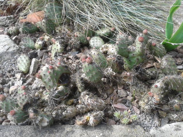 Hi, obwohl wir kaum Winter und nur wenig Niederschläge hatten, ich alles wie jedes Jahr gemacht habe, spielt eine der Opuntien jetzt verrückt