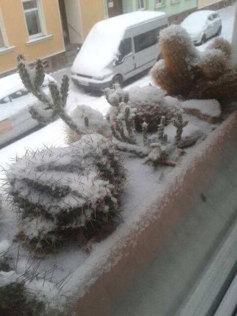 .Die meisten Opuntien fangen erst an, besonders die imbricata steht kurz vor dem aufblühen. Ich habe aber was anderes beim aufstehen vor dem WZ Fenster entdeckt.