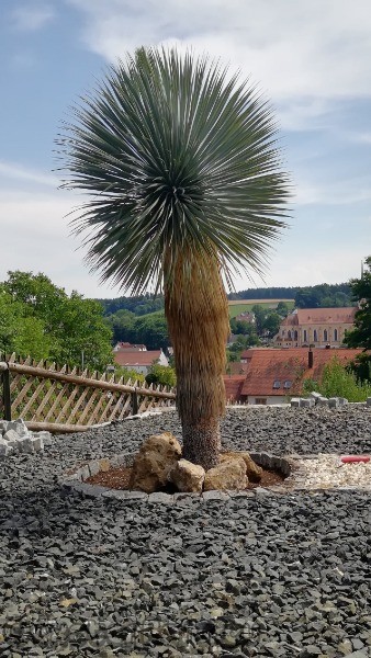 Habe mir eine 2,20 m hohe Yucca rostrata gekauft, die seit jeher ausgepflanzt war und bei Wind und Wetter,