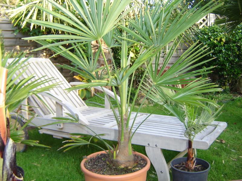 Alle Palmen sind 20 Jahre alt und sehr früh gepflanzt worden, lediglich die Untere stand 9 Jahre im Kübel, also ist sie seit 11 Jahren ausgepflanzt.