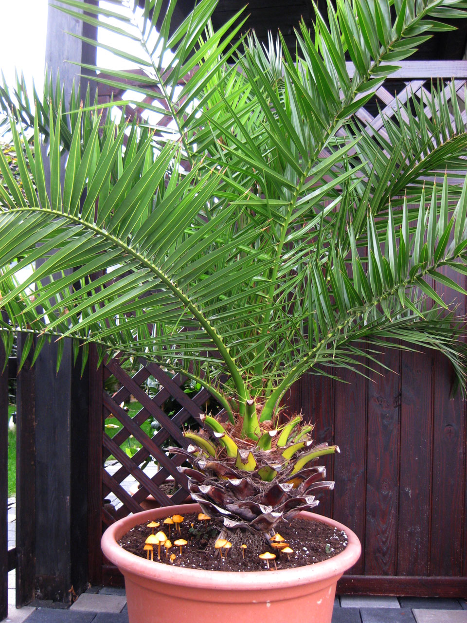 Habe bei der Phönix heute mal 10cm Wurzelmasse abgesägt und wieder mit neuem Boden befüllt, so daß nur noch der Stamm ohne Wurzeln sichtbar ist. Gleichzeitig einen Untersetzer unter den Kübel gestellt fürs gießen, soll anscheinend besser sein.LG Lopa