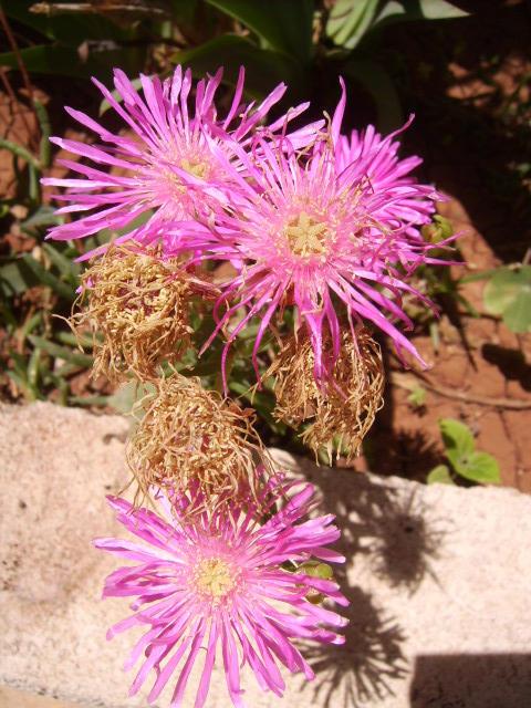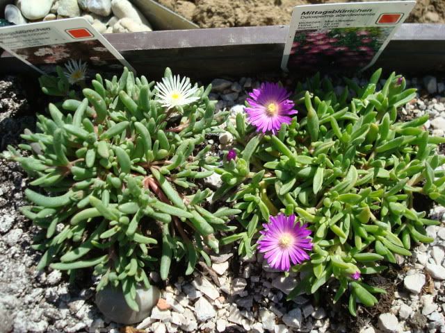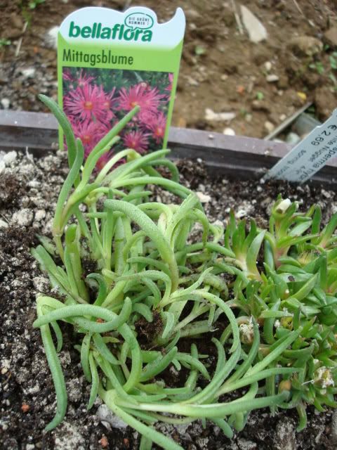 Delosperma cooperi (gefriert bei mir ebenfalls teils stark zurück, wuchert dafür im Sommer extrem stark)