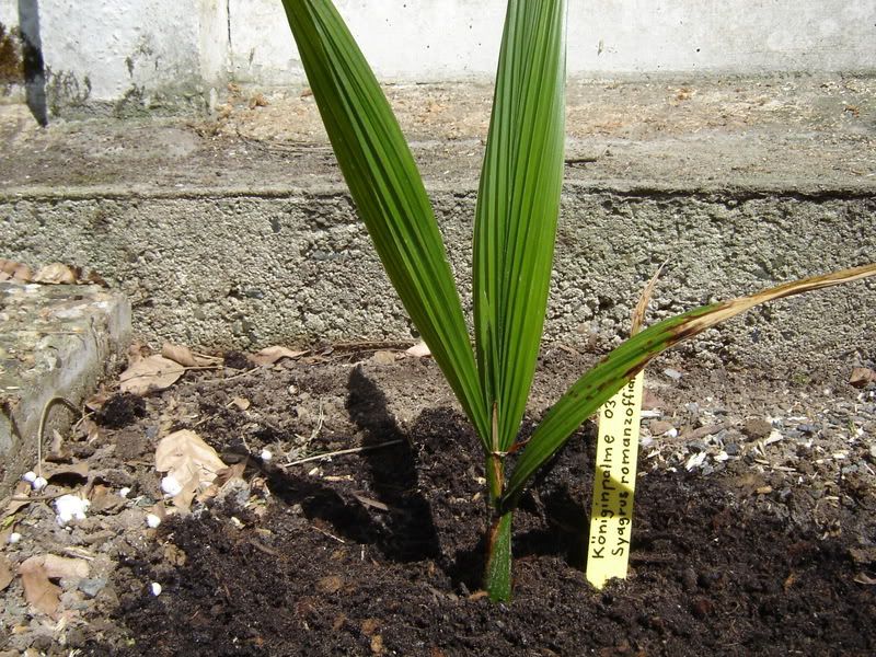 Syagrus Romanzoffiana sagt man zwar nur eine Frostverträglichkeit bis -4°C nach, doch diesen Winzling scheint das nicht zu interessieren.