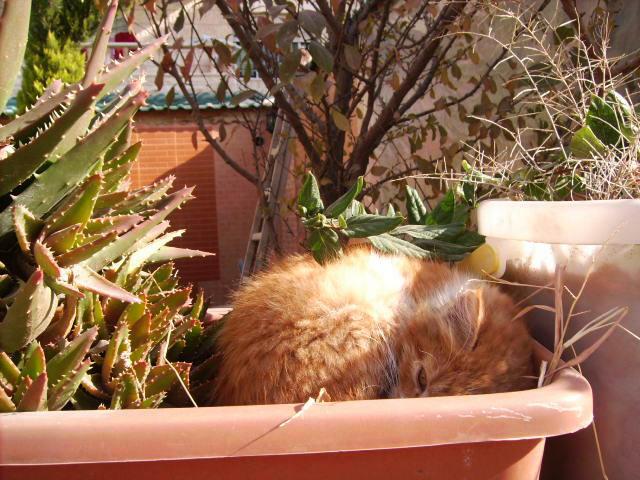 Wir haben einen Kater ... der hatte seine größte Freude, wenn er auf einem Opuntienblatt im Trog liegen konnte - weil er ja sonst keinen Platz hat bei uns!!