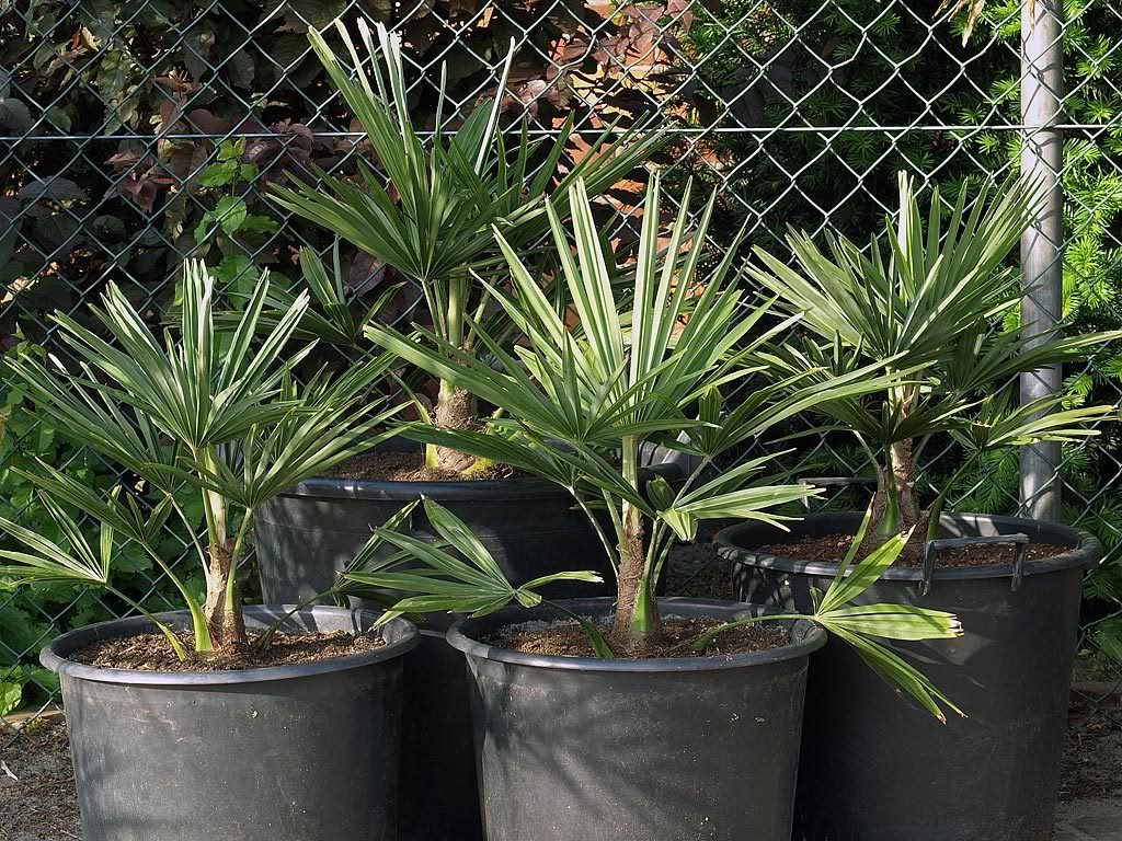 Braune Spitzen an Jubaea chilensis & Hanfpalmen & Musa sikimensis