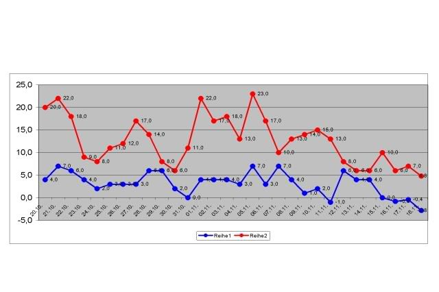 Eine Excel-Tabelle/Diagramm habe ich heute gebastelt und mit Daten aus dem www gefüttert ... eigene hatte ich ja noch nicht durchgehend: