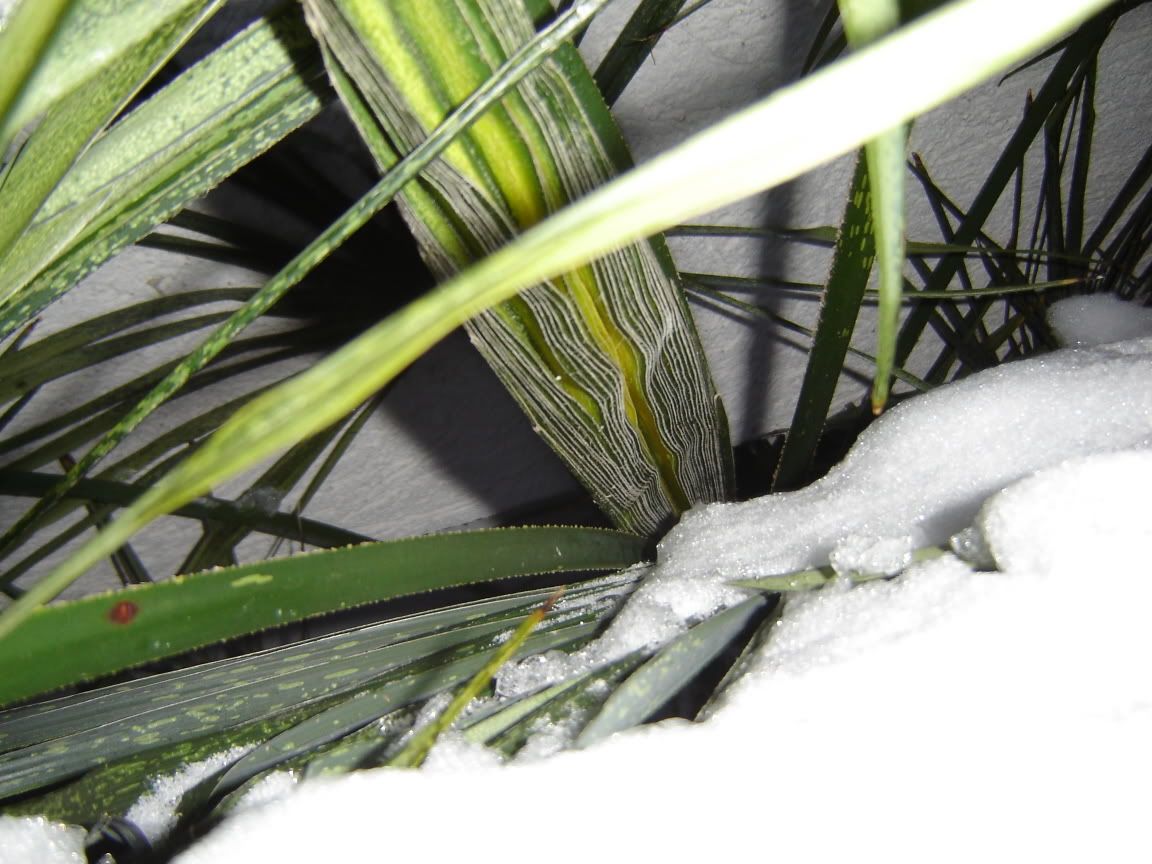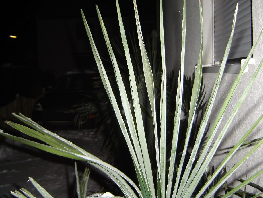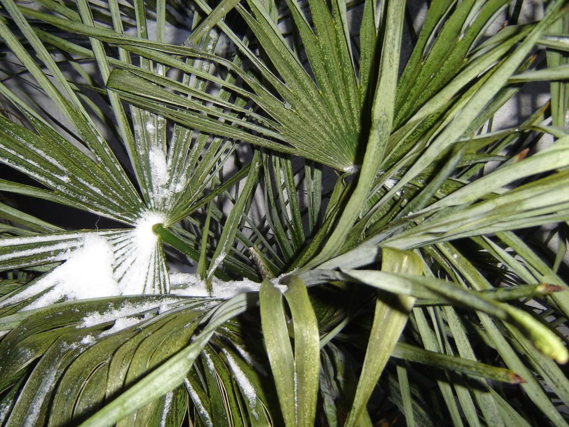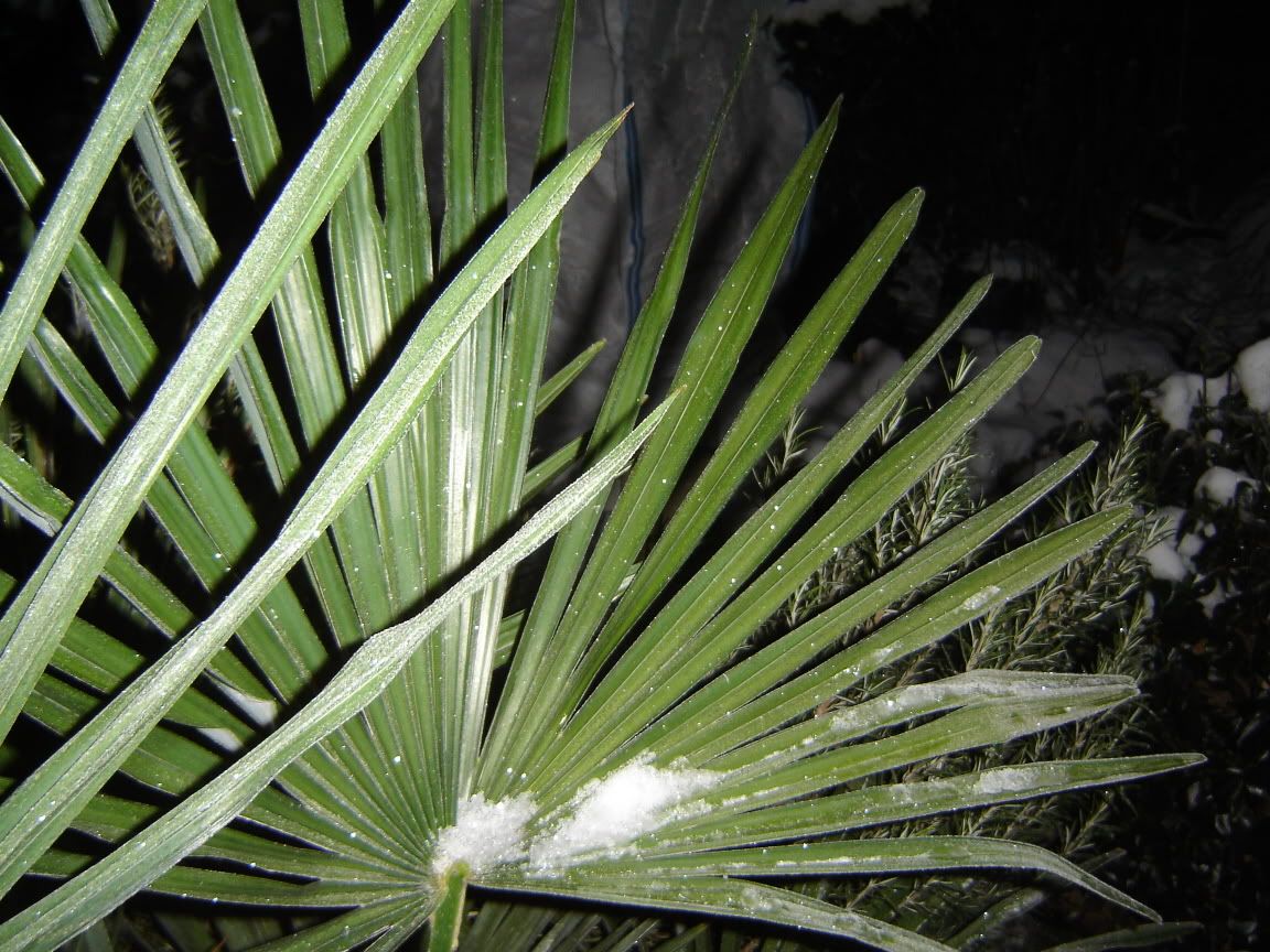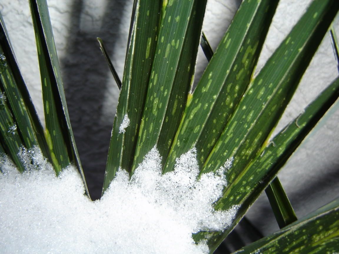 Sonnig stehende Palmen sind viel höherer Verdunstung während des Frostes ausgesetzt und falten daher ihre Blattsegmente stärker.