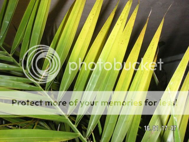 Die Palme zeigte in diesem Sommer kaum Wachstum und die äußeren Wedel bekamen eine Gelbfärbung.