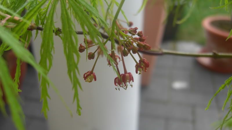 Ich hab nun meinen zweiten jap. Ahorn. der erste war ein Fächer, hat leider nicht überlebt. Der zweite ist nun ein Schlitzahorn, die lat Bezeichnung fehlt mir. Er steht nun im zweiten Jahr in unserem Terrassenbeet und hat den Winter prächtig überstanden. Und er blüht. Freu mich wie Bolle.