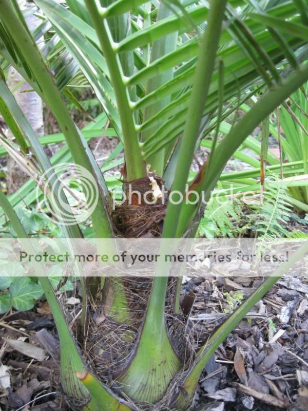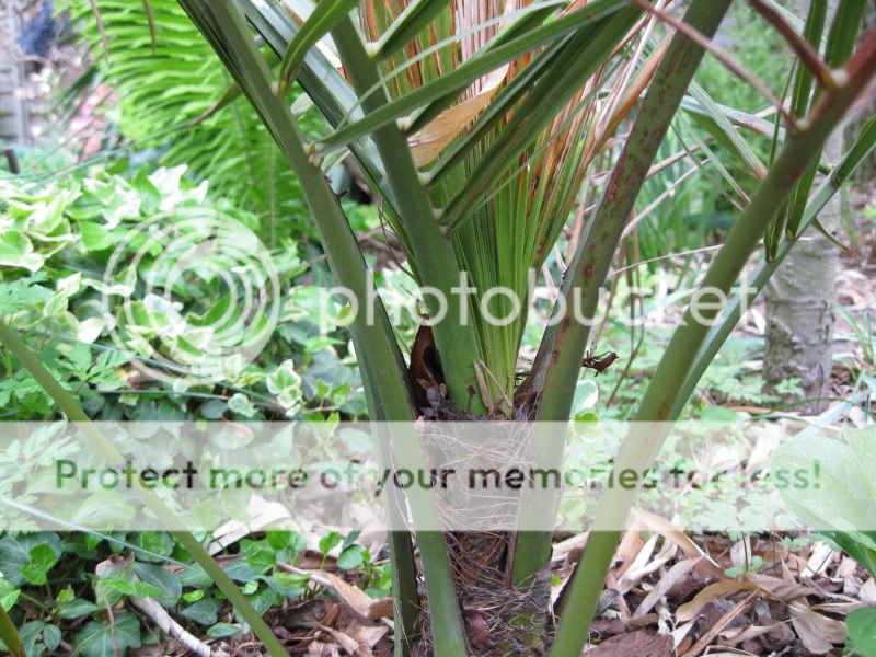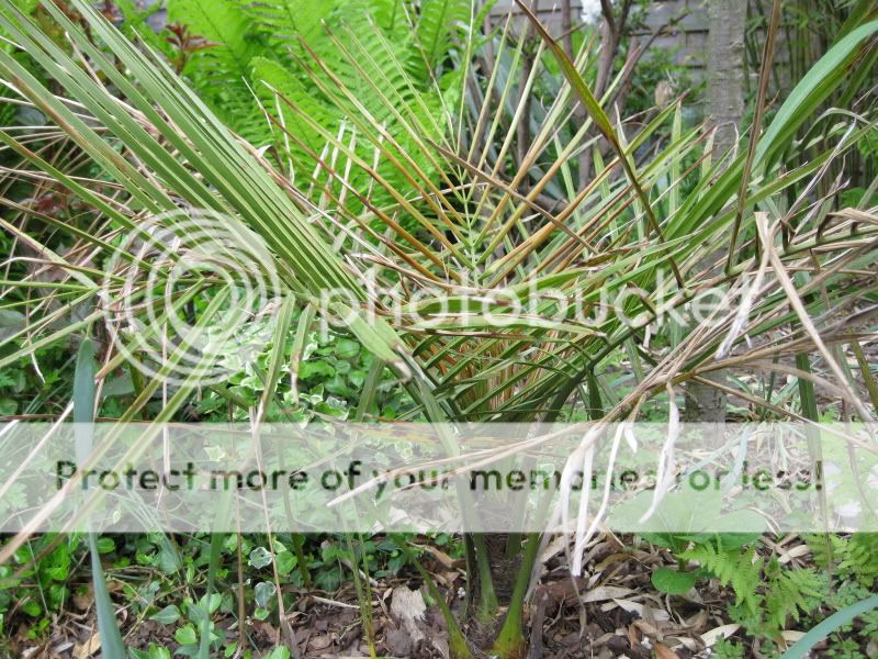 Sie hat zwar einige Frostschäden an den alten Fiedern und Sonnenbrand an den Neuen, aber sie treibt schon wieder kräftig.