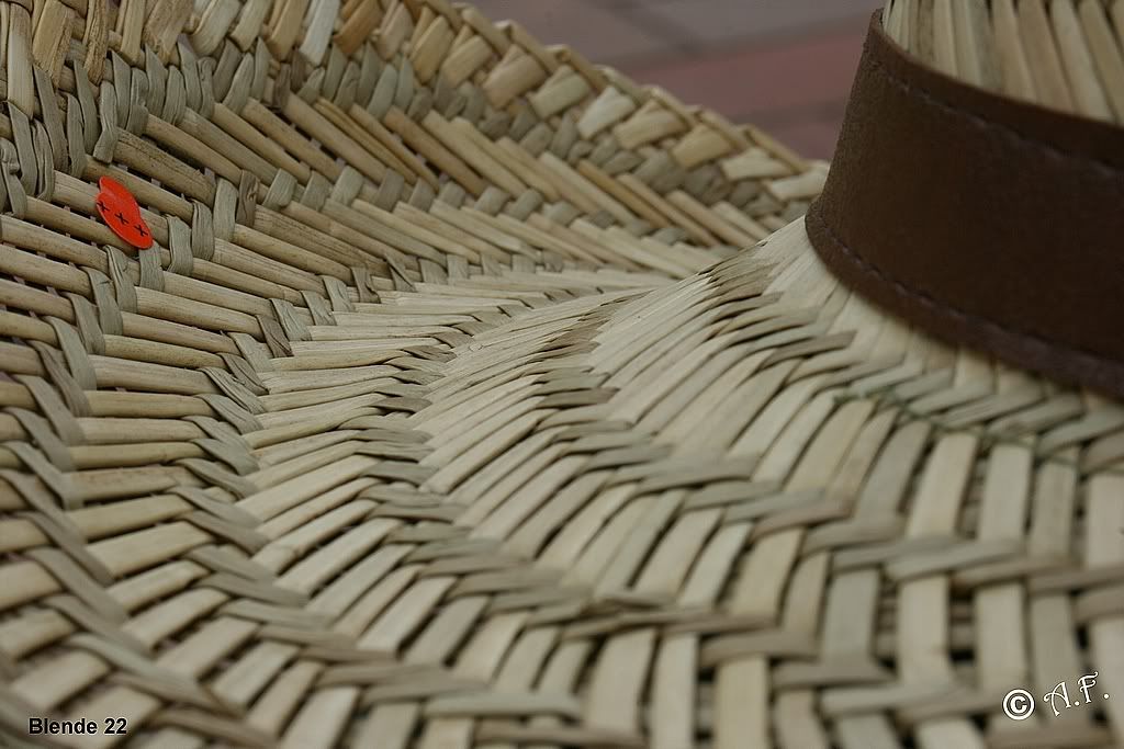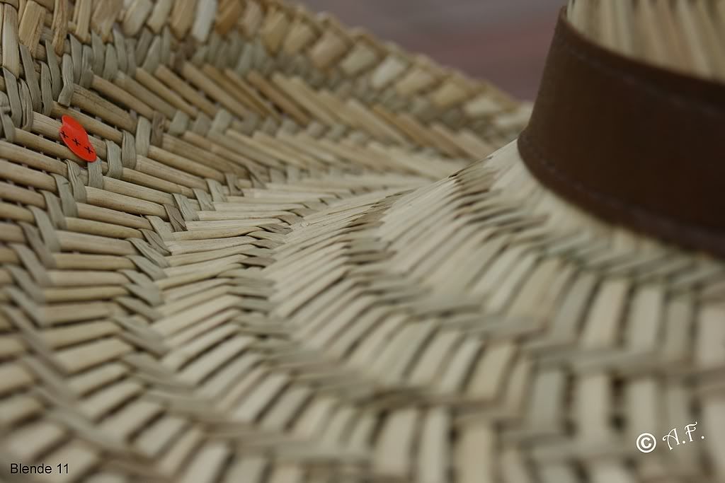 Motiv: Strohhut / Entfernung von der Linse bis zum Fokusierundspunkt (Rot) ca. 30 cm.
