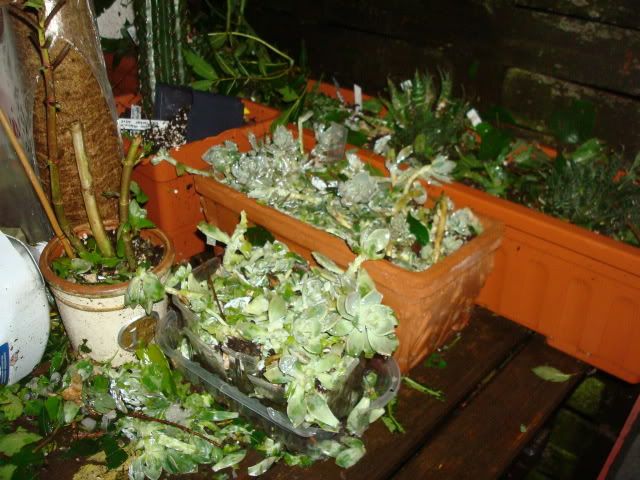 Morgen gehts ans Aufräumen und Retten, was noch zu retten ist ... und die Versicherung kontaktieren - wegen des Daches der Carpörter - und dann diese so rasch als mögoich aufbauen, denn da sind die Pflanzen nicht mehr regengeschützt.