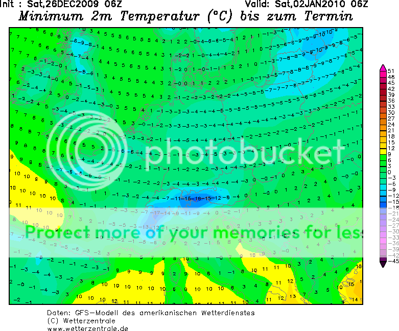 für den 07.01.010 sind aus den gestern noch -26°C heute -21°C geworden und in der ARD war gestern die Rede von -6°C. Ein Chaos in der Vorhersage, wie so oft.