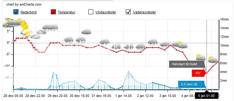 Nachdem hier ca. 4 Tage lang die Temperaturen in einem engen Bereich zwischen + 2 und + 5 °C lagen, geht es jetzt rapide nach unten.