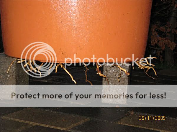 In dieser kurzen Zeit sind Wurzeln bis 80cm Länge unten aus dem Kübel gewachsen.