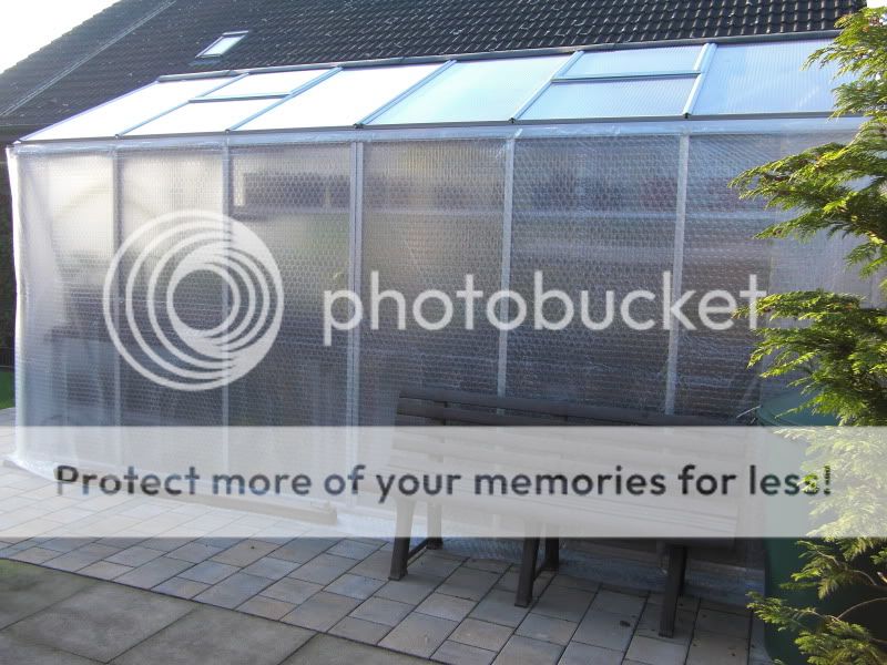 Mein GWH habe ich auch schon mit Lupo Folie eingepackt. Das Dach bleibt aber frei. Ist zwar eine große Schwachstelle in der Isolierung aber der Aufwand wäre mir zu groß und ein Tropenhaus muss es auch nicht sein.