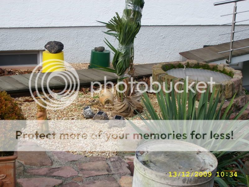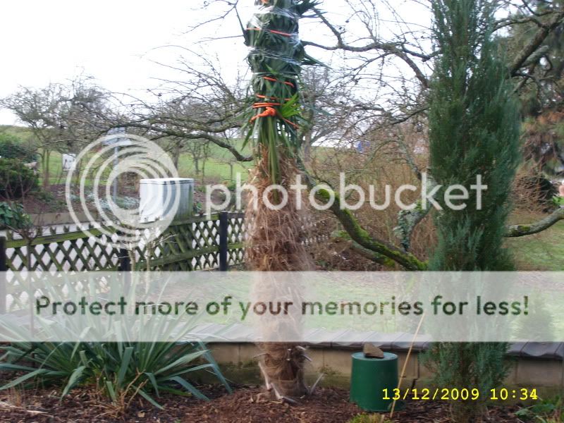 wie es auf dem Foto ausschaut, hast du am Stamm eine Art Abstansdshalter / Lichterschlauchführung geschaffen. Ich nehme an, dieses wird dann noch mit Jute umwickelt, richtig? Dann hättest du doch den schon erwähnten und gewünschten Kamineffekt und die Wärme würde somit gezielt der Palme zugute kommen oder sehe ich das falsch?