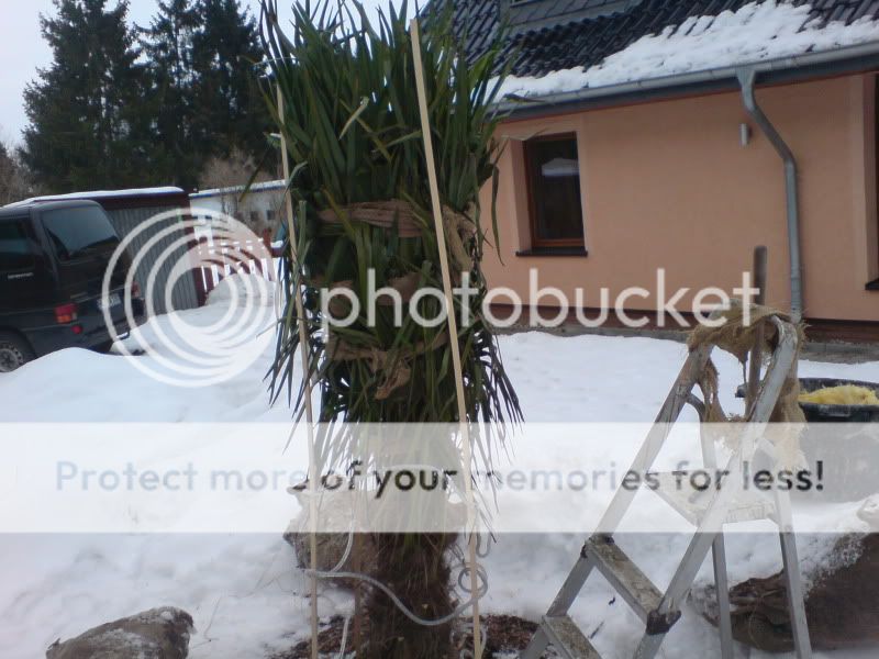 Tja ich war gerade meine Trachy`s auspacken, die schauen nicht so gut aus wie die Whasingtonia, da ich 1) erst nachdem wir - 16 Grad hatten und starken Wind, diese eingepackt habe und 2) Styropor anscheinen eindeutig besser ist als eine Luftpolsterfolie
