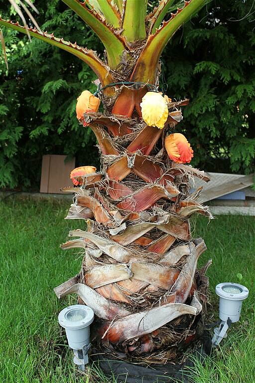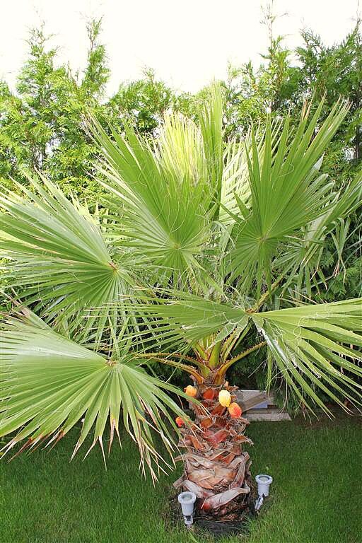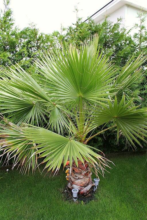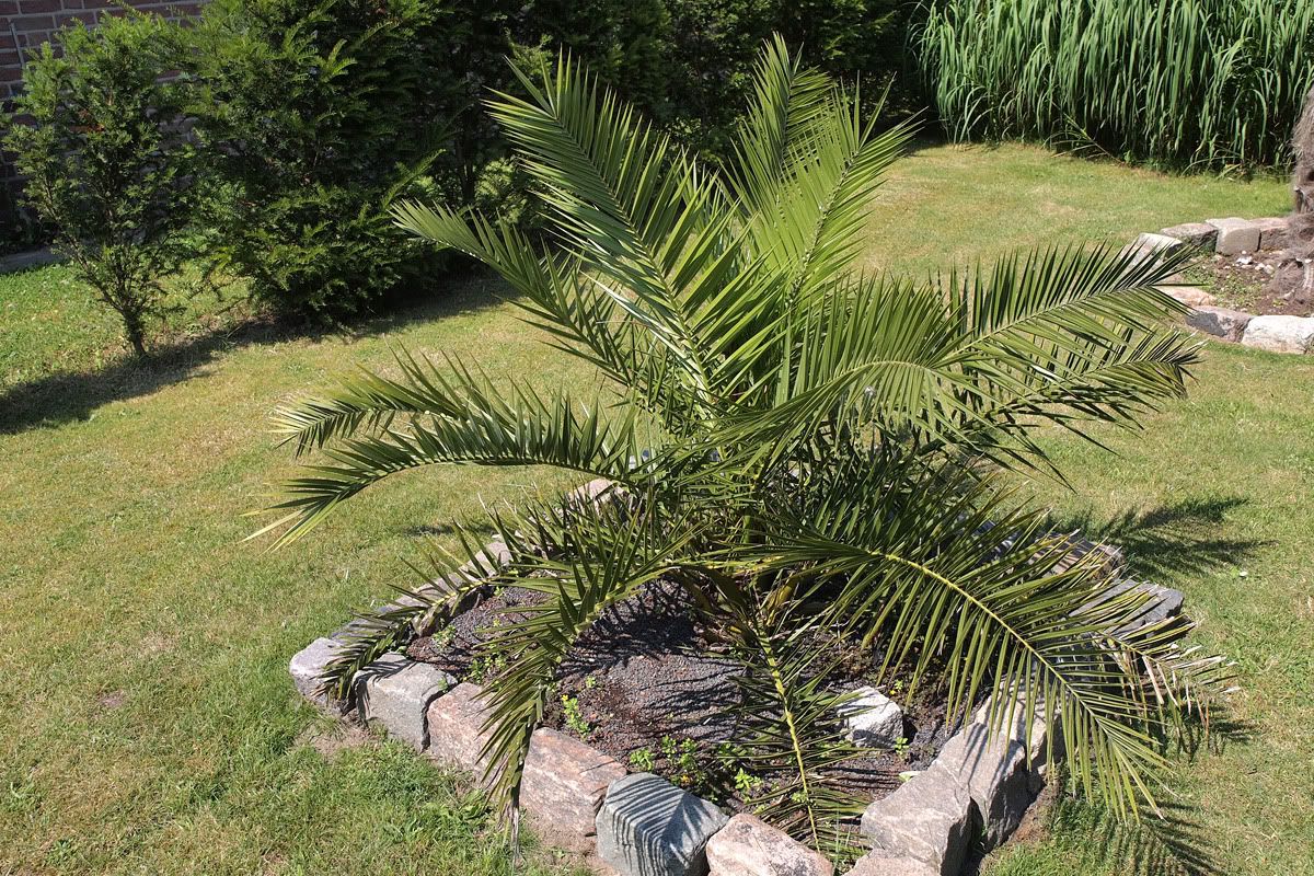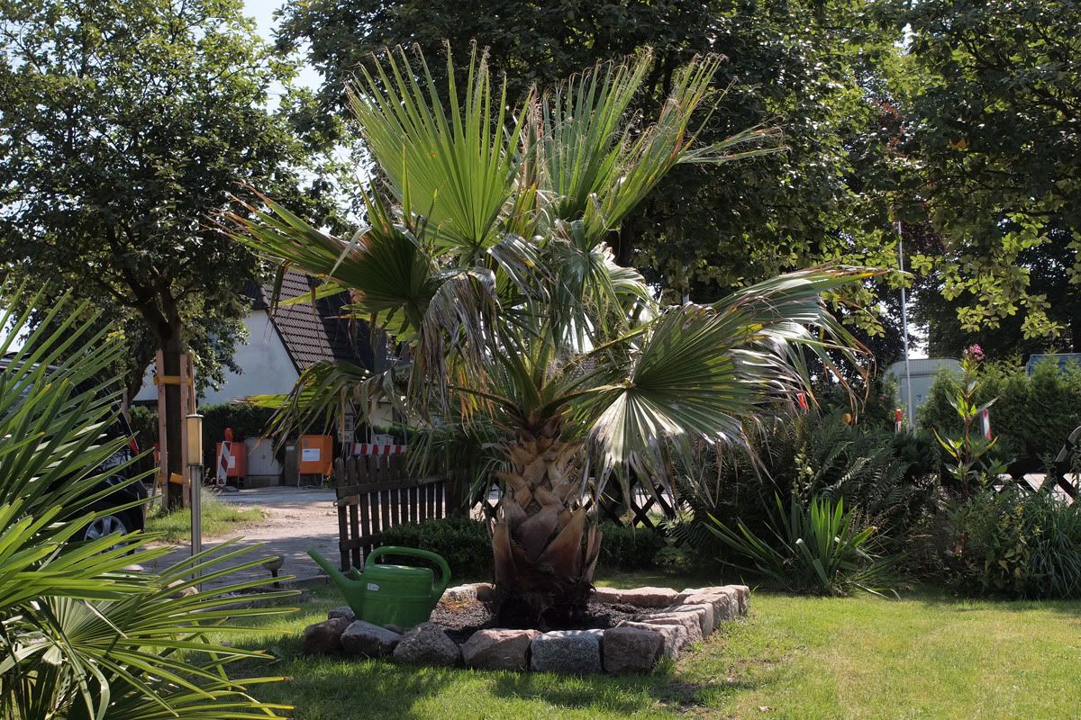Meine zwei ca 1m großen Exemplare Filibusta,die ich als verkümmerte Pflegefälle gekauft habe, machen sich nun auch gut.Fächergröße hat sich verdoppelt und shciebt nun auch fleißig Speere nach, mit ordentlich Stammwachstum.