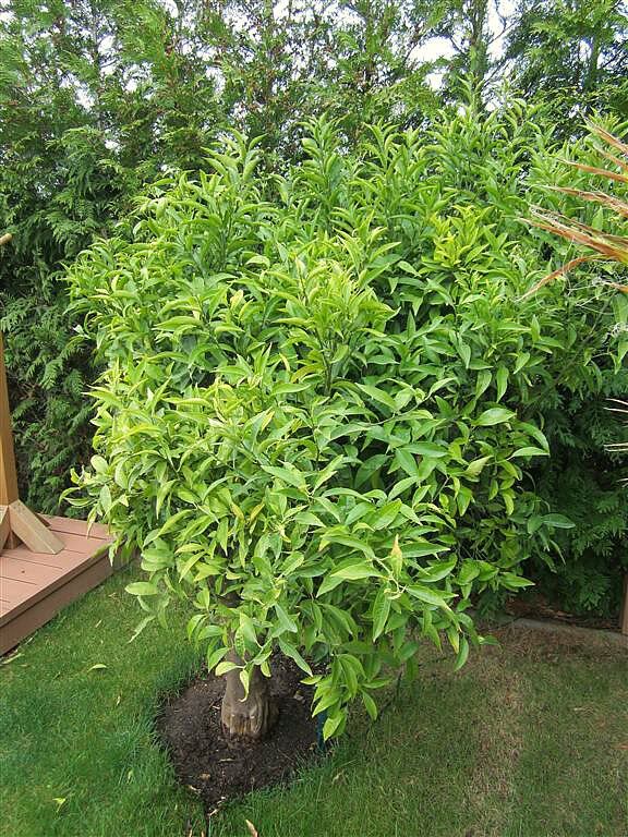 Dass sie im Frühjahr 2010 total blattlos war rührt daher dass sie wohl im Verbau durch die Hitze einer Petroleumlampe innerhalt kürzester Zeit vertrocknet (erstickt?) ist,