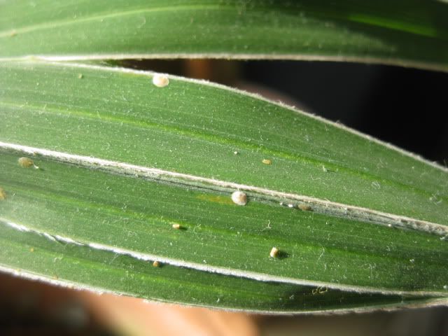 Auf der Oberseite der Fächer hat sich klebriges Sekret gebildet. Das sieht man auf den Fotos nicht so gut.