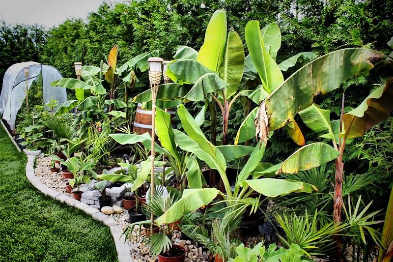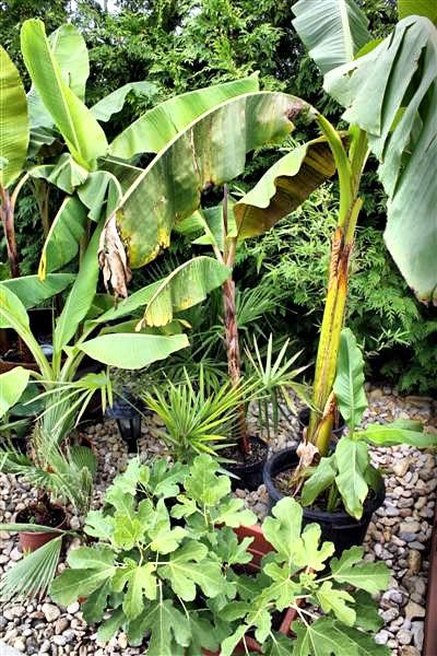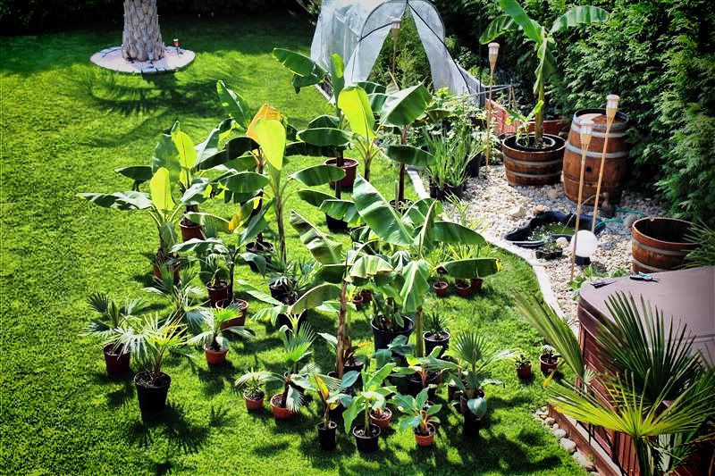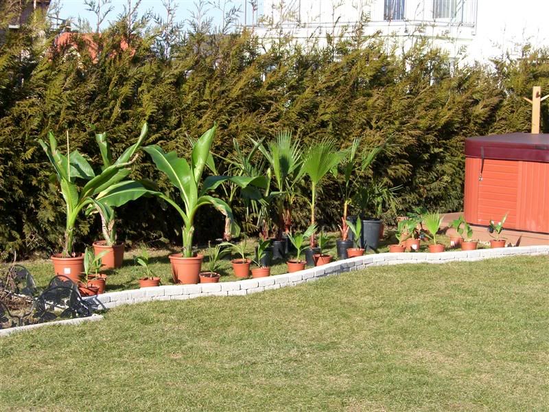Wenn Du die Pflanzen so einpflanzen möchtest ,wie Du sie dort hin gestellt hast,könnte das ein wenig zu eng werden,bedenke sie wachsen ja alle noch,vorallem die Bananen wachsen ein ganzes Stück schneller als die Palmen.Die Bananen wüede ich vieleicht erst im April auspflanzen.