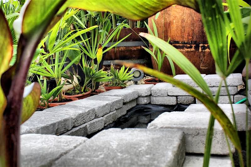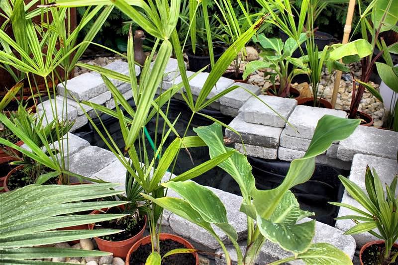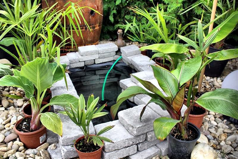 Mal über ein Jahr später schaut das schon anders aus wenn man die Fotos vergleicht. Gestern mal Inventur gemacht und festgestellt, das bringe Ich so und so nicht unter, was sich da alles angesammelt hat. Dem Nachbarn wird freuen, der wird sicher wieder etwas erben. Einiges an Bananen wurde ja ersetzt, gestern habe Ich mir mal Zeit genommen und auf den Brunnen einige Steine gelegt, die Ente angeschlossen, und einiges an Beleuchtung eingepackt. Mal sehen wie heute Abend das Wetter ist, dann mache ich noch einige Nachtfotos.