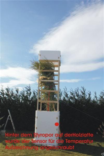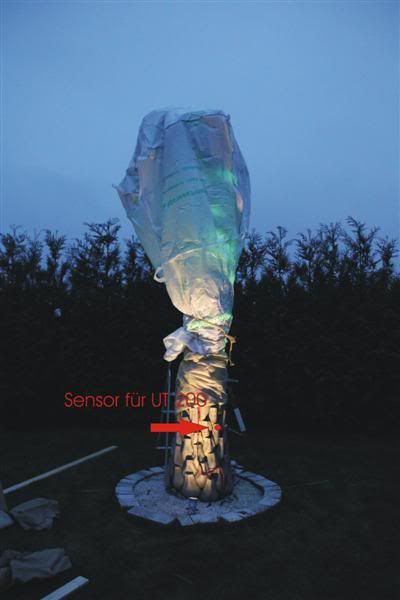 In meinem Trachyturm habe ich den Fühler des UT und direkt daneben auch den Sensor des Funkthermometers im Zentrum der hoch gebundenen Fächer angebracht.