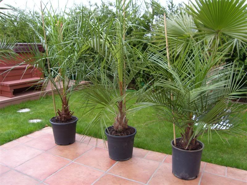 Zu meiner Freude habe ich mir noch einige Jungpalmen (wenn man da noch von Jung sprechen kann) geleistet, eine Butia Capitata (wollte so eine auch in klein) eine Butia Eriosphata und eine Jubea Chilensis. Nun alle drei sind gut mit der Postangekommen, was bei und leider nicht immer so selbstverständlich ist. Nun habe ich ein kleines Problem: welche ist welche ?? Schauen alle ähnlich aus, ich habe sie mal fotografiert, bin ich richtig unterwegs ??