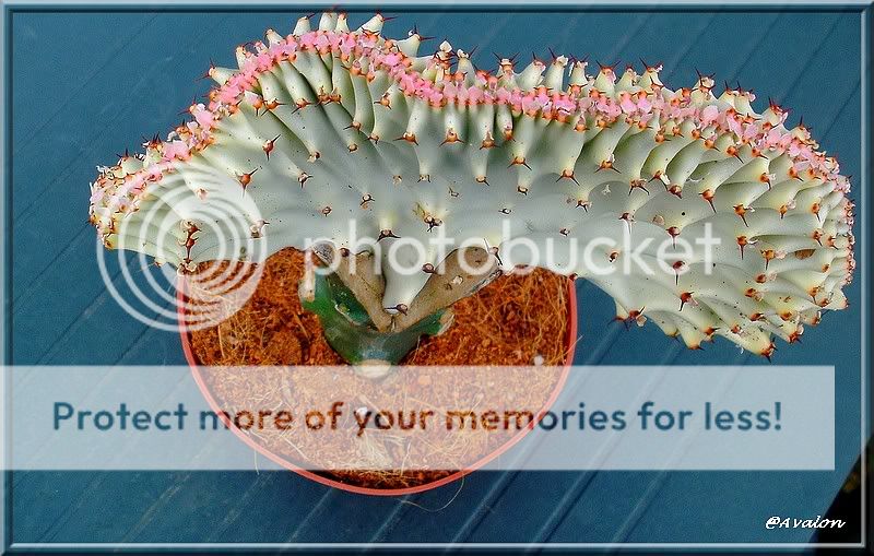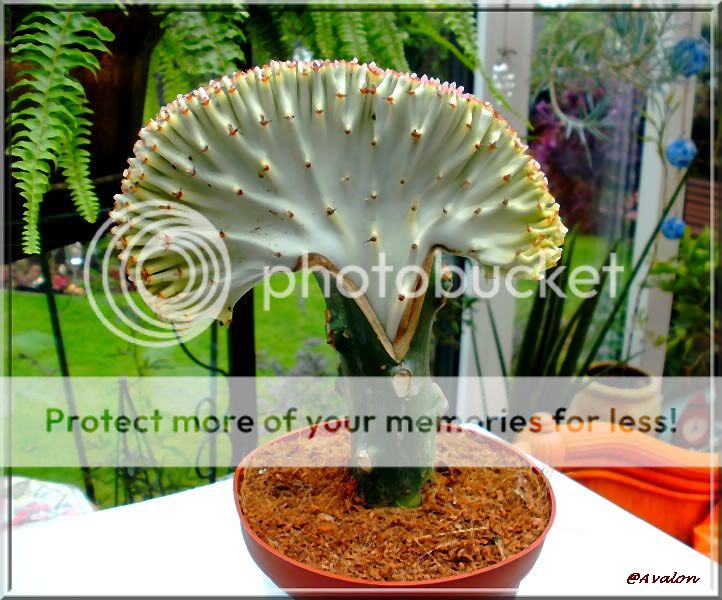 Da ich davon ausgehe, dass der 'Stamm' Euphorbia ist, sagt mir das aber nichts zu dem fächartigen Pfropf.