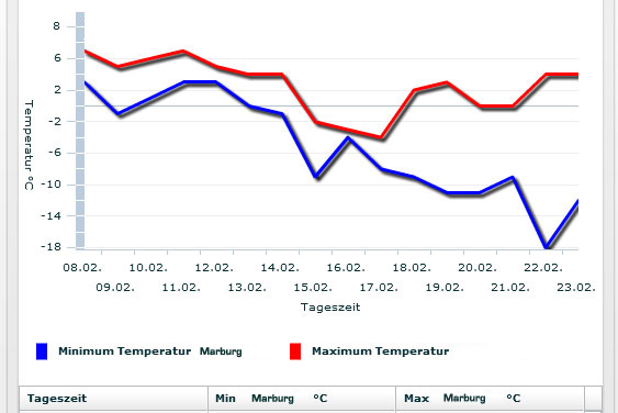 Nichts ungewöhnliches für Februar und auch im März kann es nochmal die ein oder andere kalte Nacht geben. Aber das Ende ist absehbar.