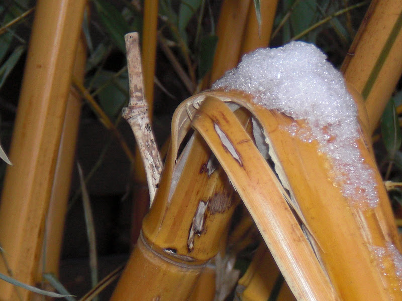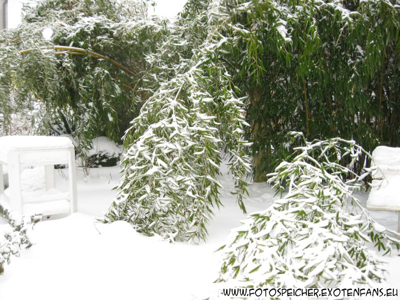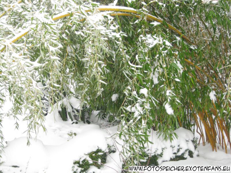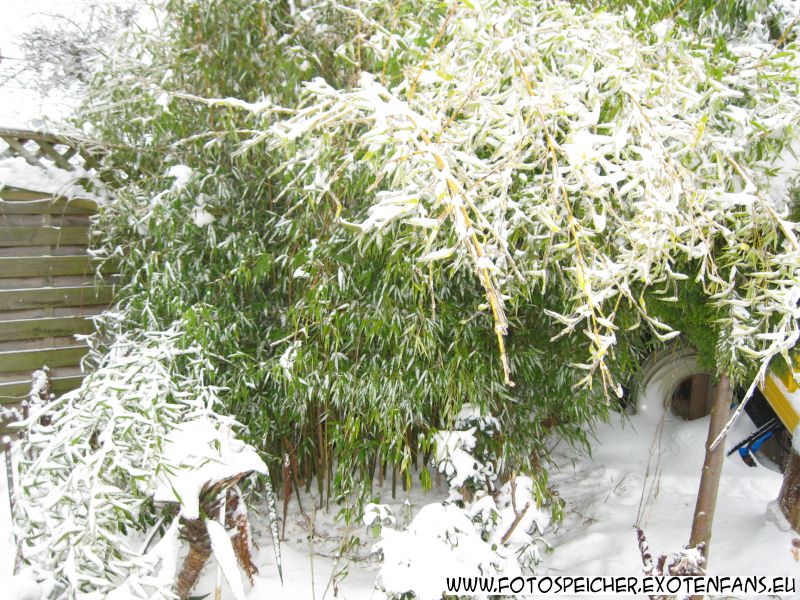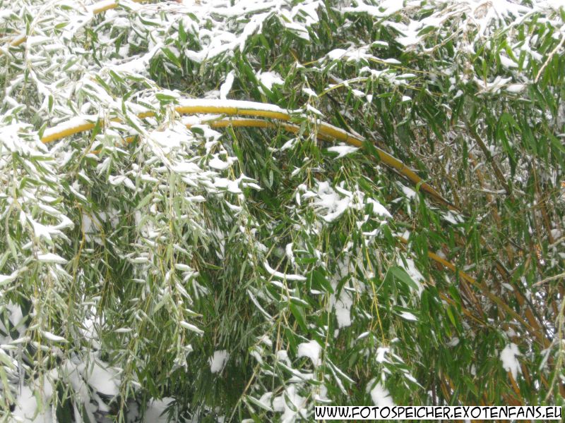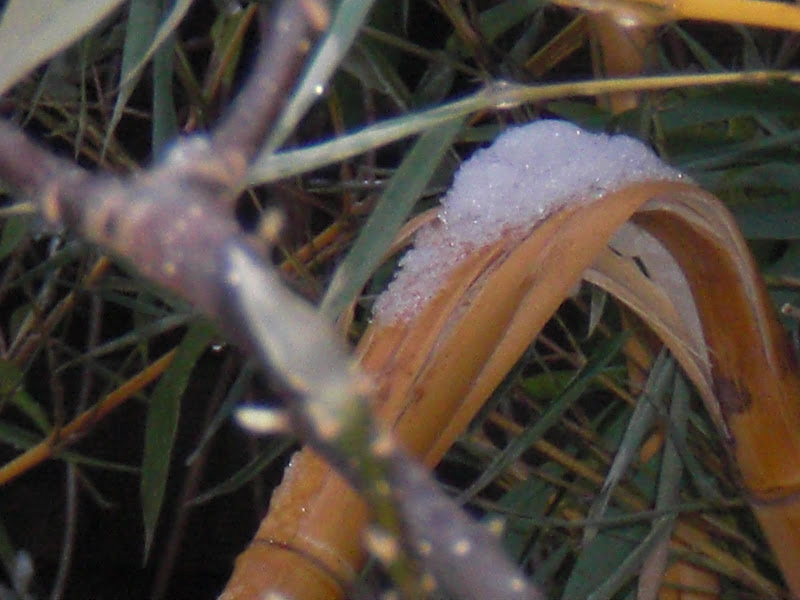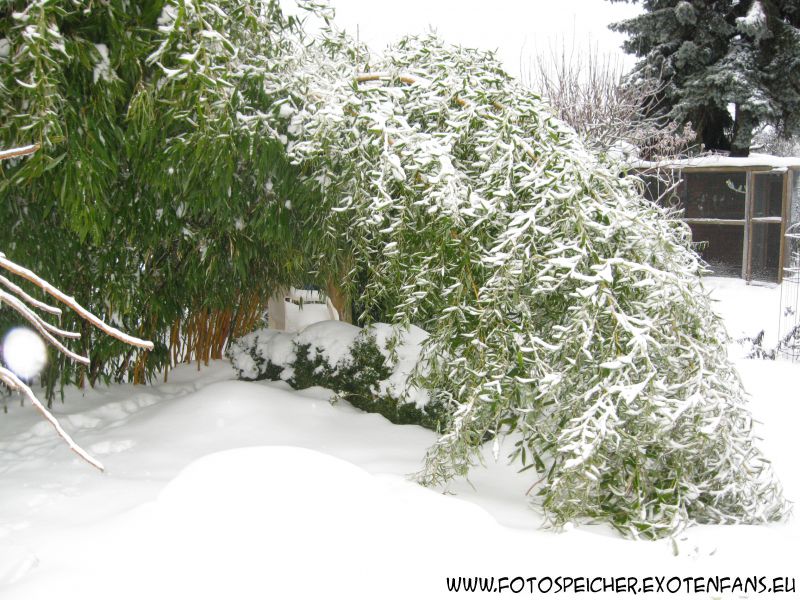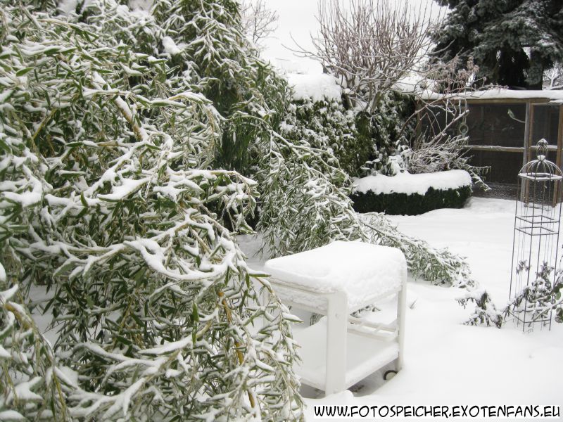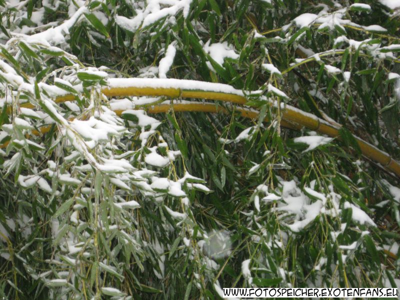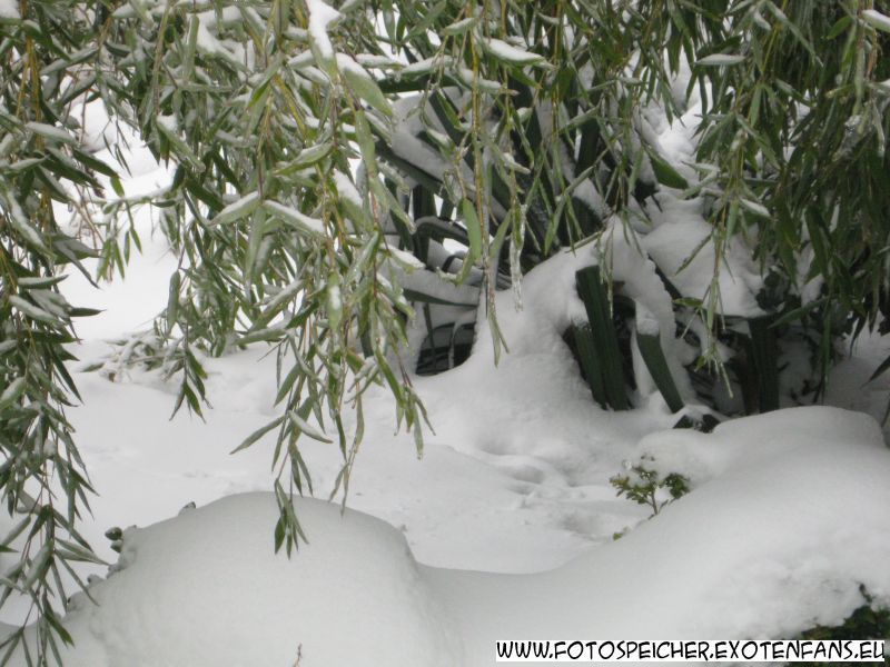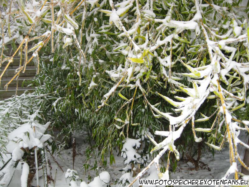 Unser Bambus ist nach etwa 18 Stunden Eisregen völlig vereist und schwer, er biegt sich dem Erdboden entgegen.