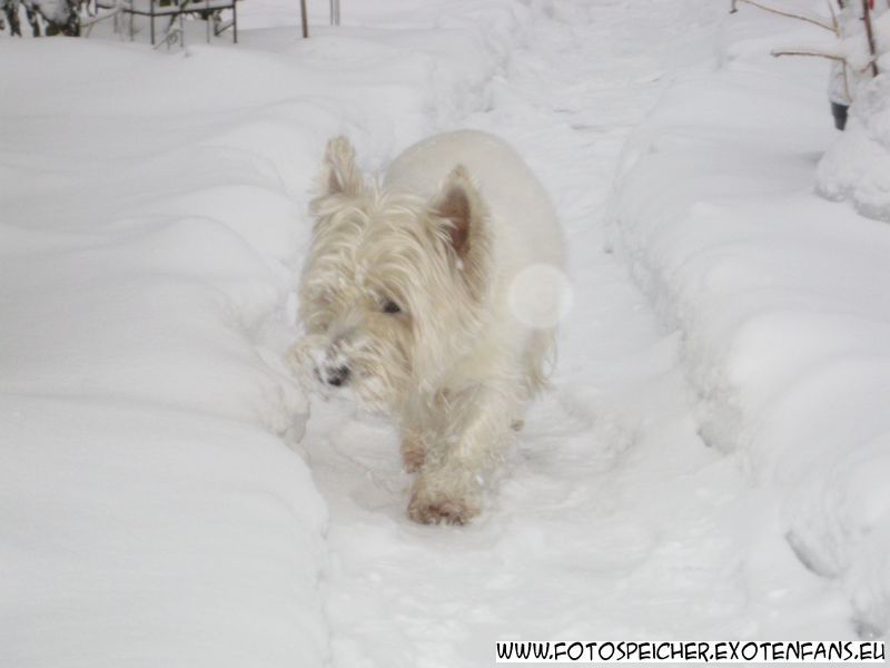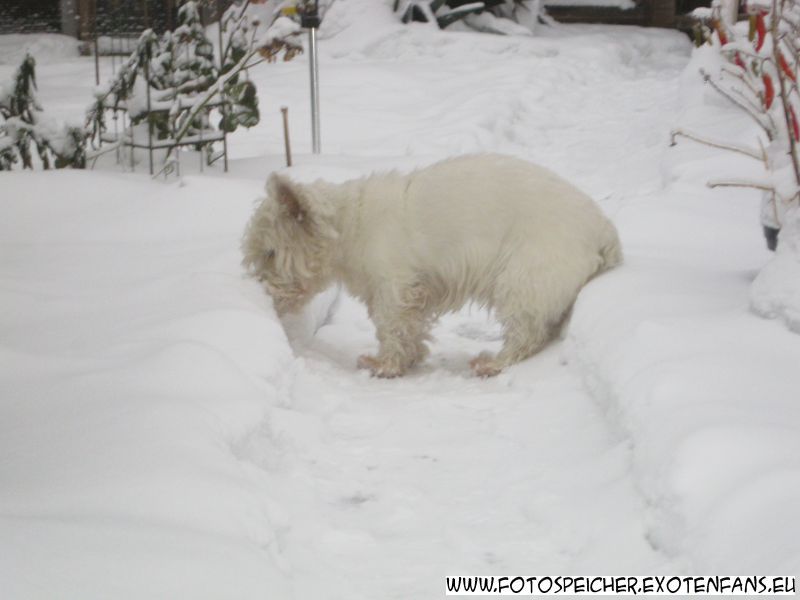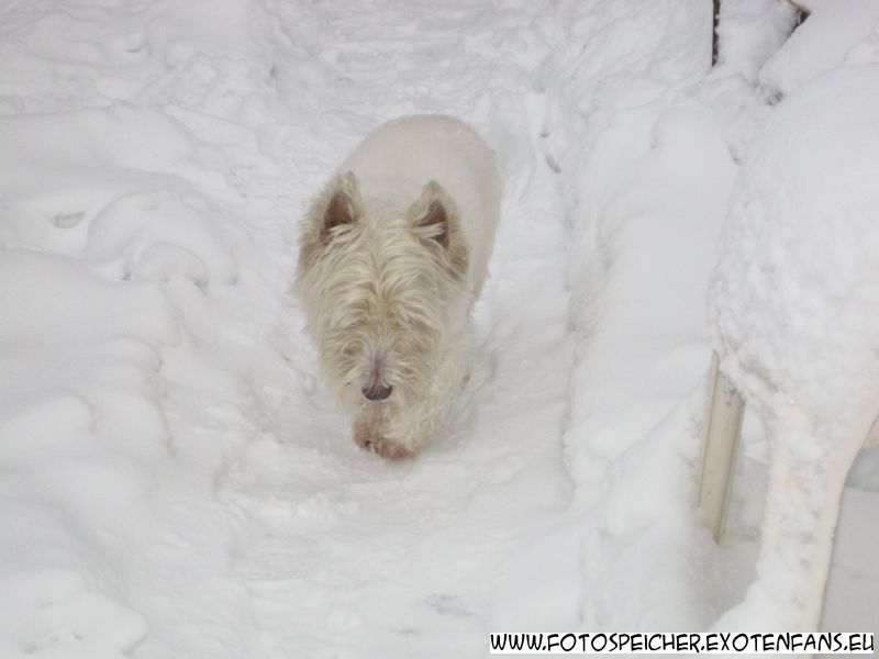 Und zum Schluss, weißer Hund im weißen Schnee.