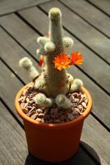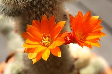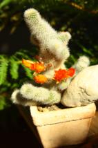Seitdem der Kaktus nun outdoor auf dem Fenstersims geparkt wurde treibt er eine herrliche orangene Blüte nach der anderen, so daß er meiner Meinung nach ein baldiges Umtopfen verdient haben sollte!