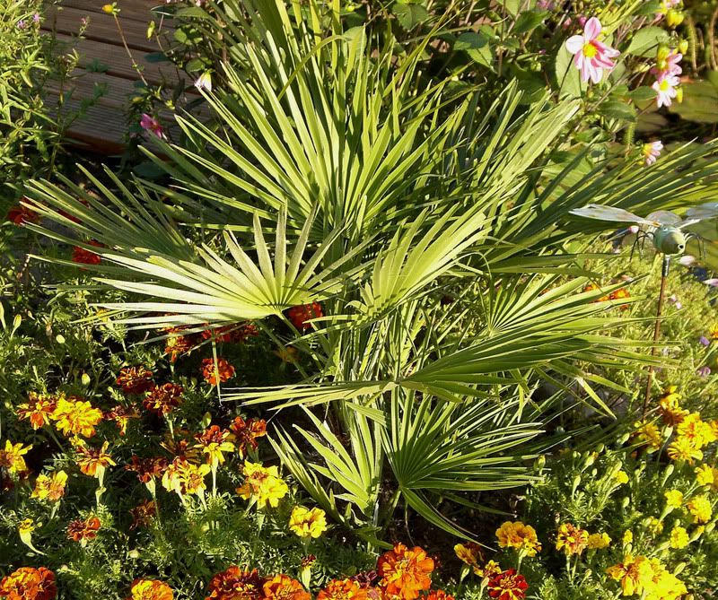 die Palme ist aber nicht winterhart. Die solltest du einräumen, wenns Nachtfröste hat. Ein paar Stunden leichten Frost -1, -2 vertragen die Palmen schon, wenns tagsüber deutlich wärmer wird.