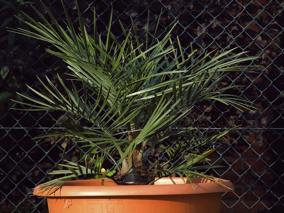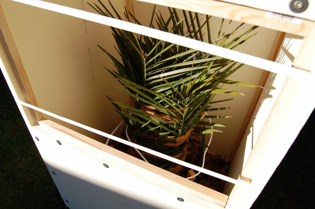 die angeblich im topf gezüchteten palmen waren abgestochen (sieht man ja an den wurzeln) und hatten braune vertrocknete wurzeln (zu wenig gewässert) und haben warscheinlich auch einen froastschaden abbekommen und waren bis zum spätsommer komplett defoliert, treiben jetzt aber gottseidank wieder aus........