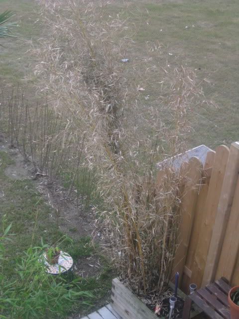 nachdem die Robusta eigentlich gut aussah nach dem Frost, wird sie jetzt von oben braun und stirbt ab? Kann ich was daran ändern? Warum isr der standing stone und der Zwergbambus nicht so geschädigt? (gleiches Beet)